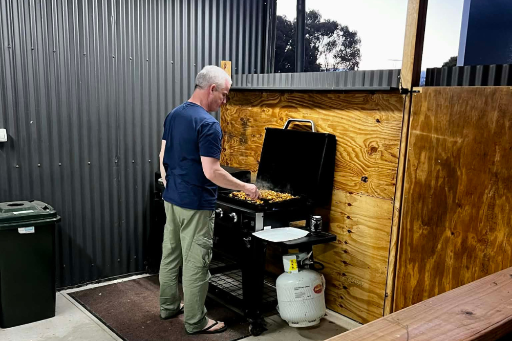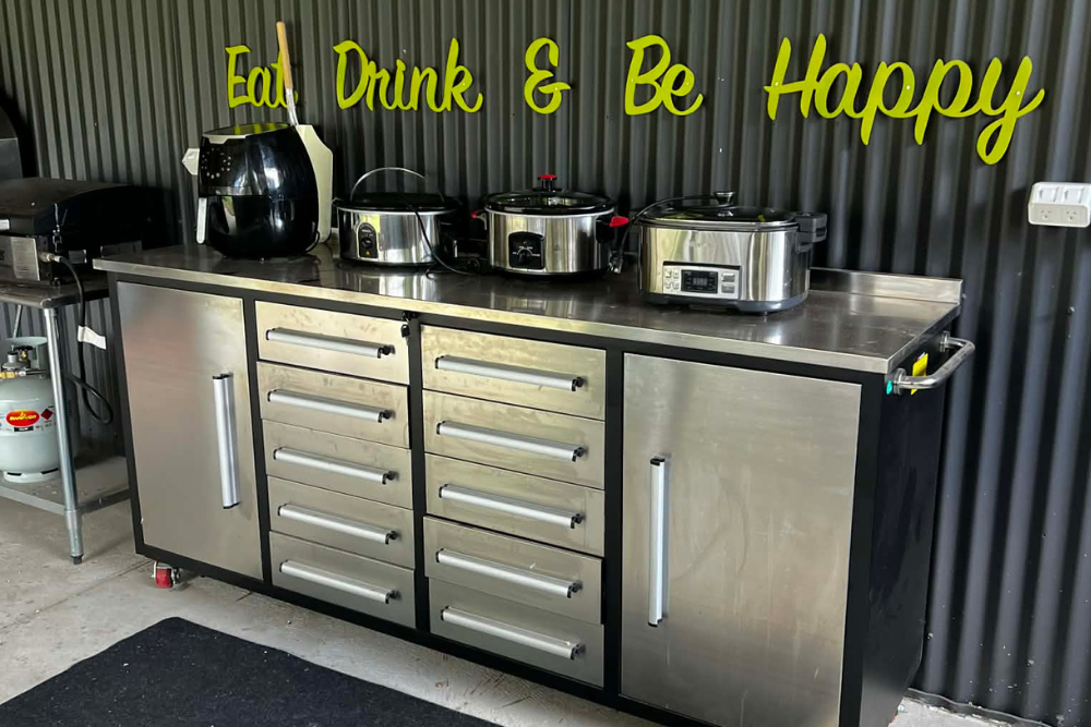 A perfect gathering spot for the entire crew, complete with a huge hotplate for cooking up a family feast.